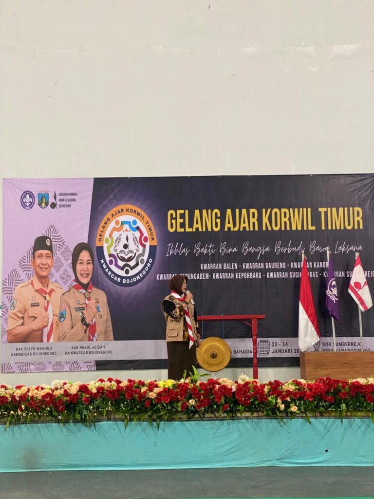 Dalam Sambutannya sekaligus membuka Kegiatan Gelang Ajar Pembina Pramuka Siaga dan Penggalang Korwil Timur Tahun 2026, Wakil Bupati Bojonegoro Dra. Hj. Nurul Azizah, MM selaku Ketua Kwartir Cabang Gerakan Pramuka Bojonegoro menyampaikan bahwa capaian dan kontribusi gerakan pramuka dalam mendukung pembangunan daerah salah satunya adalah peningkatan Indeks Pembangunan Manusia (IPM) Kabupaten Bojonegoro yang semula 72,37 menjadi 73,74 tentunya semua itu tidak lepas dari peran berbagai elemen termasuk Pramuka.