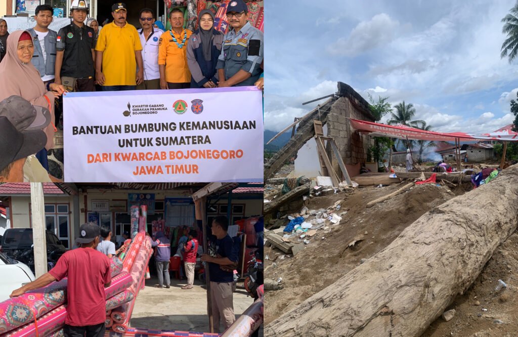 Bojonegoro, 6 Januari 2026 – Dalam wujud nyata kepedulian sesama, Kwartir Cabang (Kwarcab) Pramuka Bojonegoro melalui Pramuka Peduli Bojonegoro mengirimkan bantuan bantuan kepada korban banjir dan longsor di Sumatera Barat, khususnya Kota Padang dan Kabupaten Agam. Aksi solidaritas ini berlangsung tanpa henti selama tiga hari, mulai 31 Desember 2025 hingga 2 Januari 2026, menjangkau tiga titik penyaluran utama: Koto Tuo (Kota Padang), Maninjau, dan Palembaiyan (Kabupaten Agam).